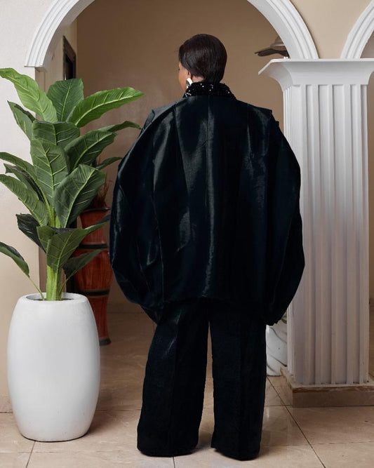 Bolanle Aso Oke African Hand woven Pant with Luxurious Organdy Exergerated Button down Shirt