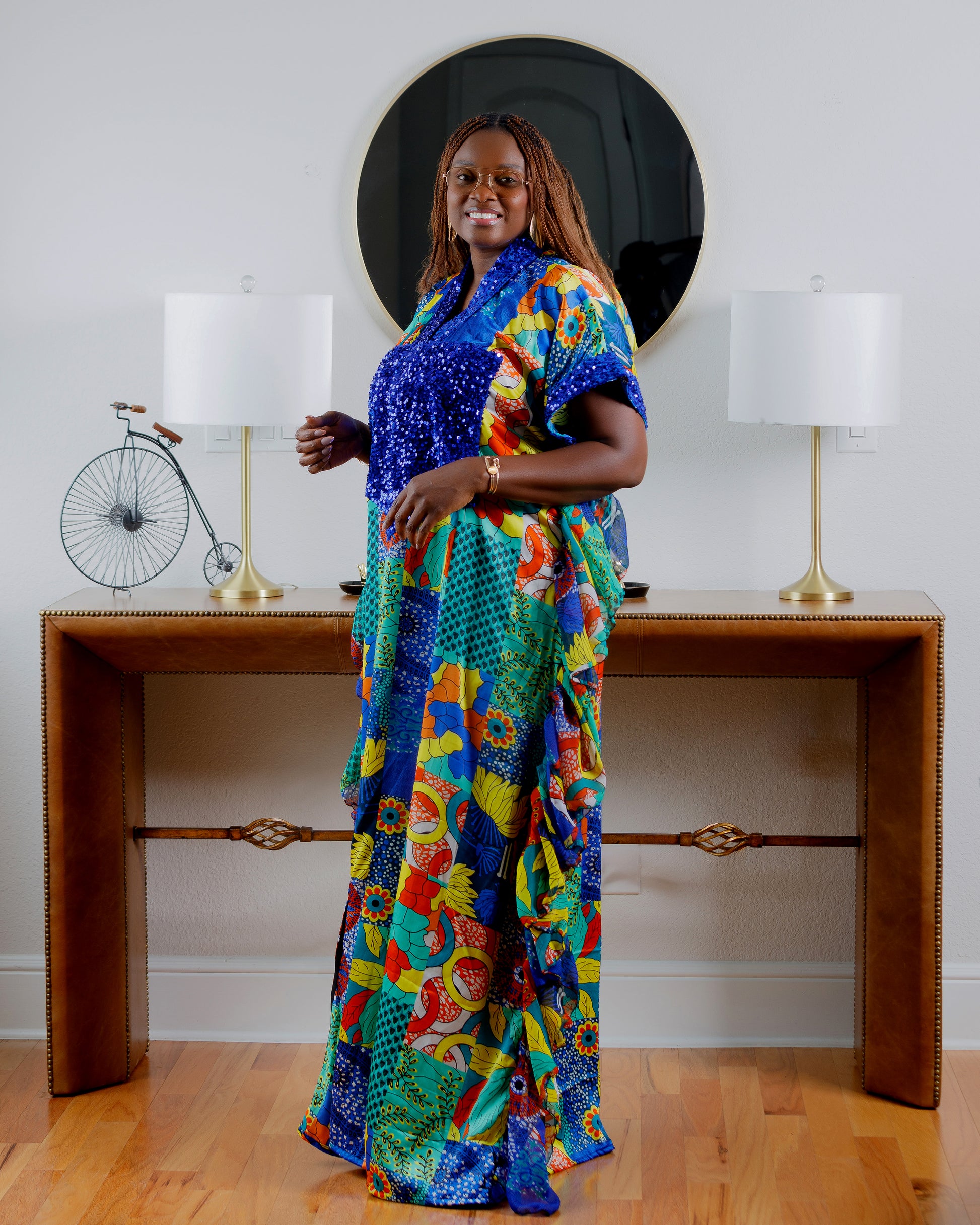 Embrace the vibrant spirit of Africa with our African Print Silk Boubou, designed to bring the essence of the African to life. This stunning Boubou features an exquisite print inspired by the essence of the african woman’s class, boldness. It’s more than just a garment; it’s a tribute to Africa’s natural beauty and culture.