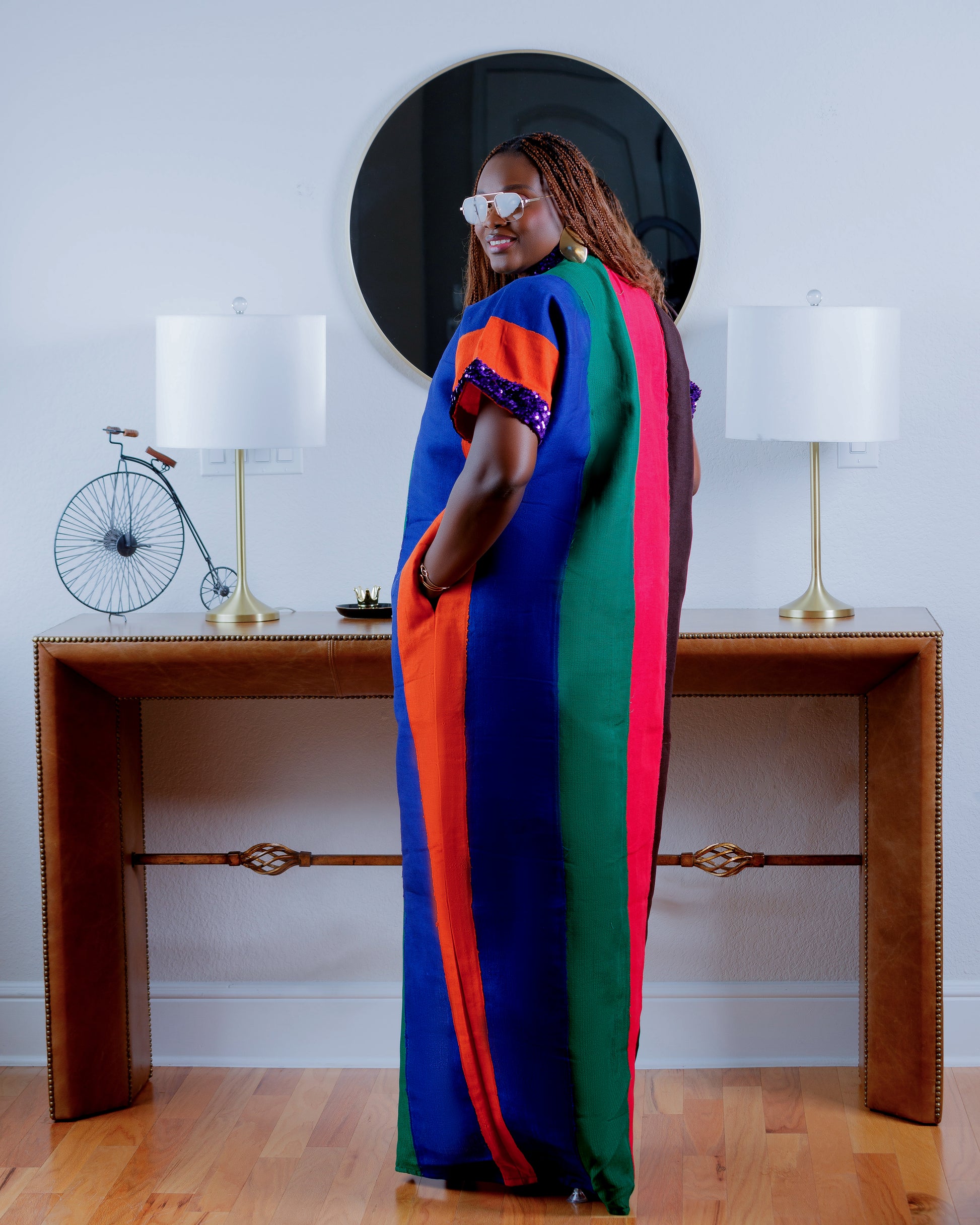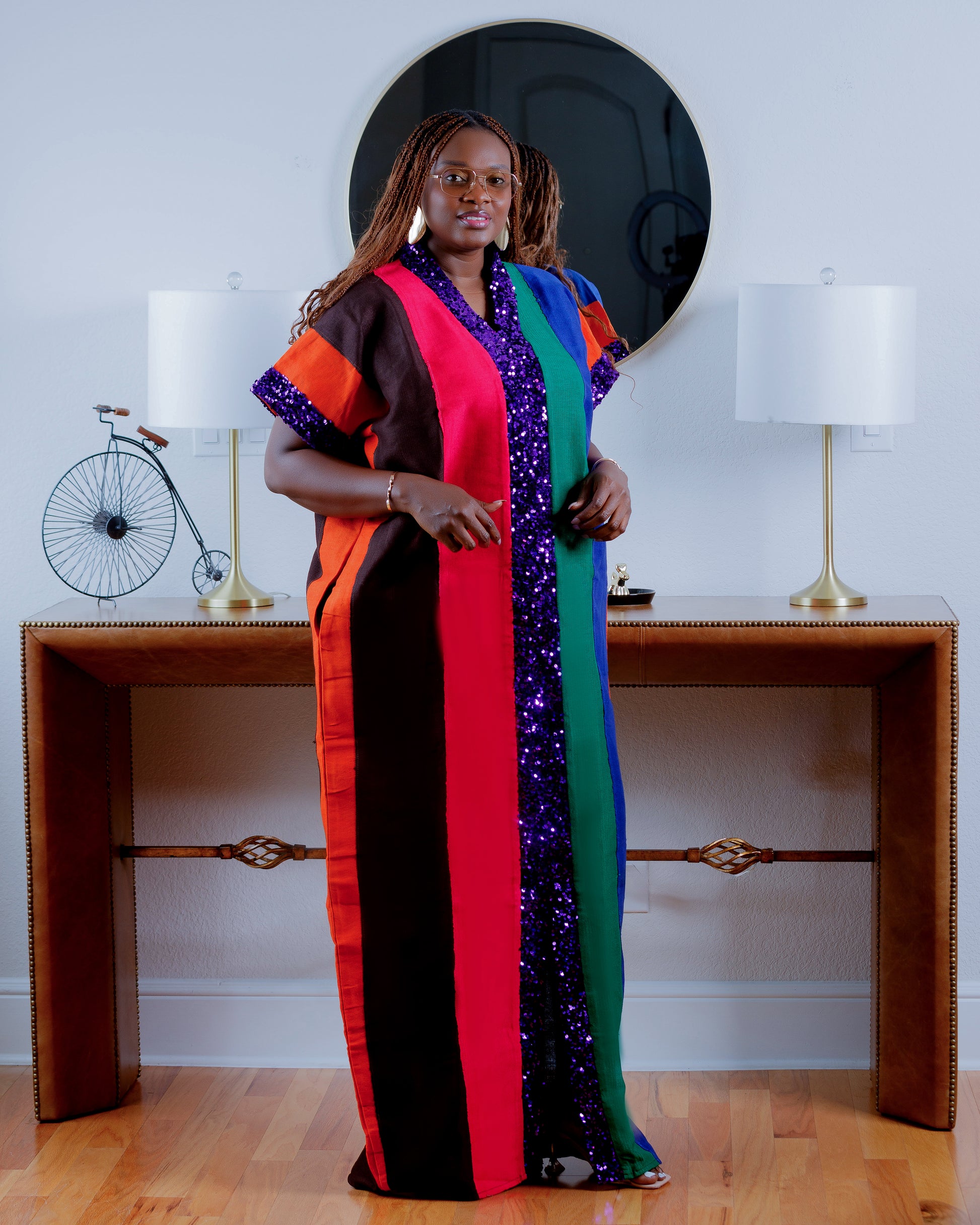 I wore this gorgeous Boubou to my younger cousin's wedding last month, and I felt nothing less than REGAL! Everyone I passed stopped and complimented me. The quality is excellent: the fabric has a good "weight", so it hangs nicely and holds its shape. However, it is lightweight on the body and very soft. The inner belt is wide, so you get a really good cinch, and a body shaper/girdle was not needed. I was the literal picture of luxury and comfort, a combination that many women find very difficult to achieve! This boubou is highly recommended, and I will absolutely be back! Thank you for creating such a beautiful garment!