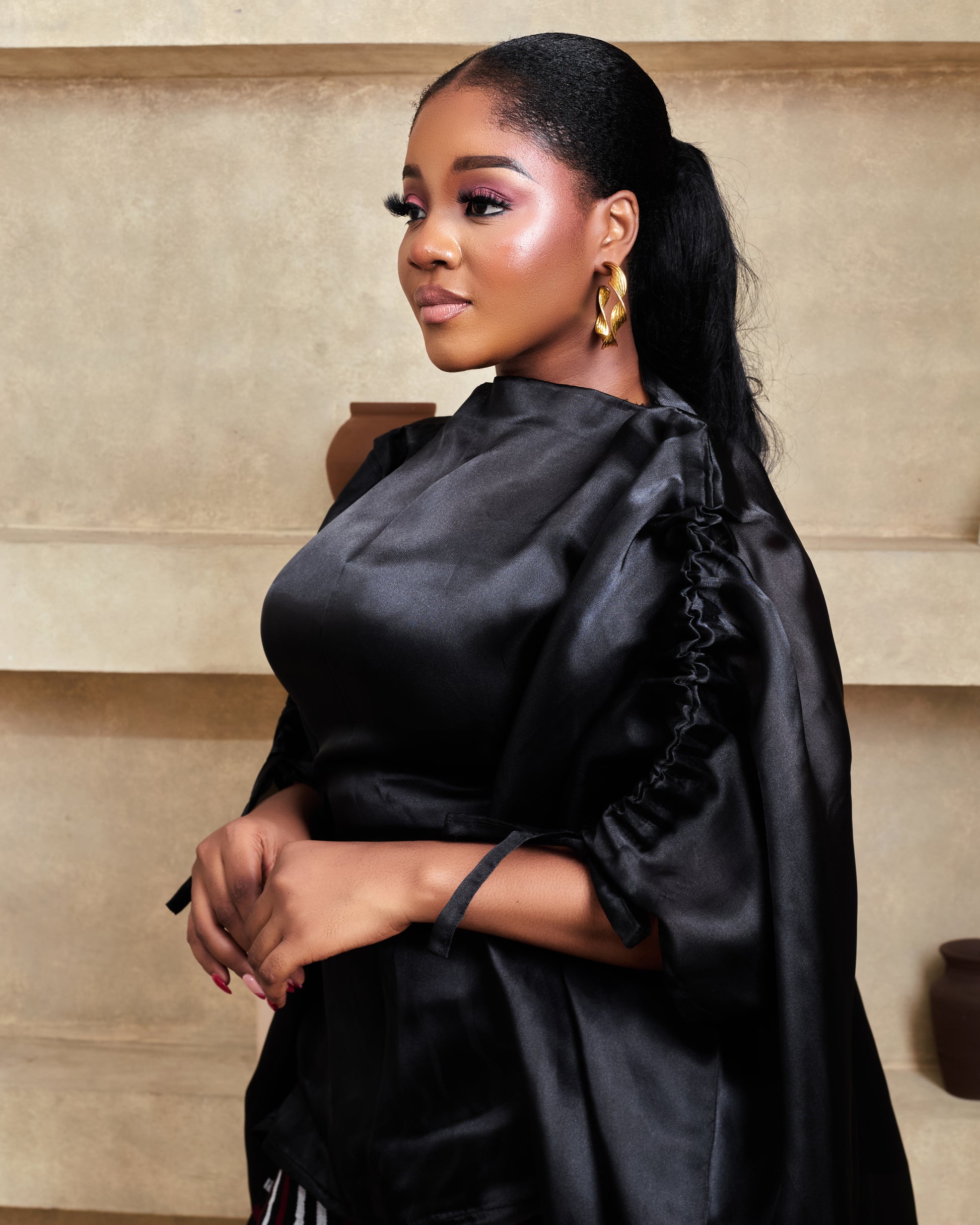 - Boubou blouse with a drawstring shoulder detail
